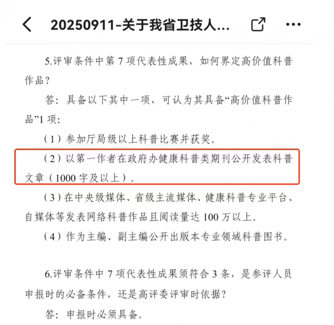 二、多地试行“前置审核”,科普或将成为“卫生职称评审硬通货”?